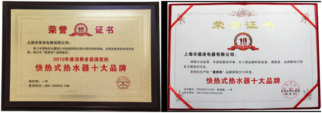 經(jīng)“中國(guó)電熱水器網(wǎng)”(www.cndrsq.com)對(duì)全國(guó)快熱式電熱水器市場(chǎng)的調(diào)查以及全國(guó)消費(fèi)者和經(jīng)銷商的投票,德恩特快熱式電熱水器獲得“2012年度消費(fèi)者最滿意的快熱式熱水器十大品牌”,并榮獲第一名。