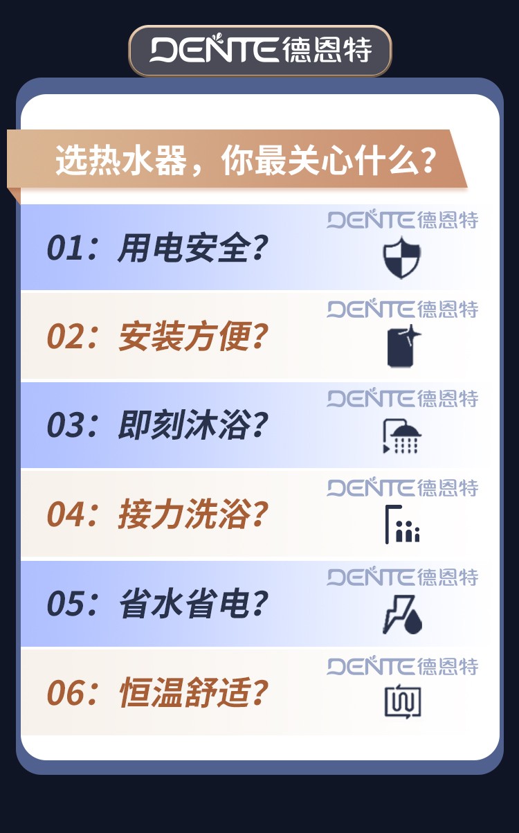 德恩特品牌旗下涵蓋即熱式電熱水器,速熱式電熱水器,快熱式電熱水器品牌和凈水機(jī)等